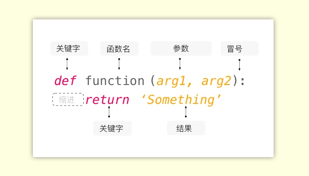 Define a function named ‘function’ which has two arguments : arg1 and arg2,returns the result——‘Something’