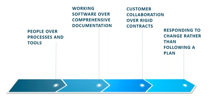 Agile is a philosophy of software development to rapidly deploy applications in a much more organized way. In other words, you want a rapid deployments all the codes, all the writing, without too long waiting, at the same time you want to make sure you have a small chunk of codes that can be shipped to your clients.