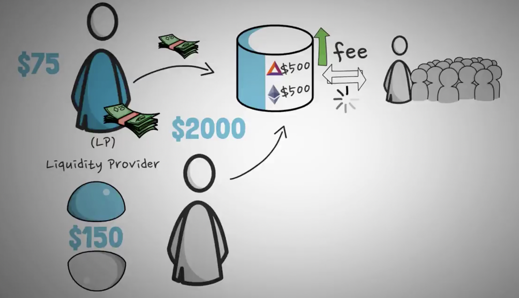 - 而在每笔交易都需要缴纳一定的tax,这个tax也就成为了liquidity pool provider的收入来源。