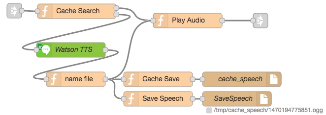 [{"id":"3de6aca1.301b04","type":"exec","z":"5d32c0c0.5a8a3","command":"omxplayer","addpay":true,"append":"","useSpawn":"","timer":"","name":"Play","x":630,"y":80,"wires":[[],[],[]]},{"id":"45f20593.7f955c","type":"function","z":"5d32c0c0.5a8a3","name":"Play Audio","func":"\nbase = \"/tmp/cache_speech/\";\nmsg.payload = base + msg.file;\n\nreturn msg;","outputs":"1","noerr":0,"x":427.1428756713867,"y":219.999981880188,"wires":[["1704af8e.4f3a3"]]},{"id":"5051c394.5cb85c","type":"function","z":"5d32c0c0.5a8a3","name":"Cache Search","func":"msg.query = msg.payload;\n\n// for latency computation\nvar id = msg._msgid.replace('.',''); //remove '.' as that messes up flow.get;\nvar now = new Date().getTime();\nflow.set(id, now);\n// end of latency\n\nvar cache = flow.get ('cache_speech') || 0;\nif (cache === 0) \n{\n    msg.cache = \"Cache not initialized.\";\n    return [null, msg];\n}\n\nvar len = cache.length;\n\nfor (var idx=0;idx<len;idx++)\n{\n    if (cache[idx].key === msg.query)\n    {\n        msg.file = cache[idx].file;\n        msg.cache = \"Found in Cache\";\n        return [msg, null];\n    } \n}\n\nmsg.cache = \"Entry not in Cache\";\nreturn [null, msg];","outputs":"2","noerr":0,"x":202.14287567138672,"y":200.999981880188,"wires":[["45f20593.7f955c"],["efaeee4c.1a2a2"]]},{"id":"79ddfad6.6d7c74","type":"function","z":"5d32c0c0.5a8a3","name":"Latency","func":"\nvar id = msg._msgid;\nid = id.replace('.',''); //remove '.' as that messes up flow.get\nvar now = new Date().getTime();\n\n\nvar startTime = flow.get(id);\nvar dt = now - startTime;\nmsg.latency = \n{\n    'tts': dt + \"ms\", \n    'id':id, \n    'start':startTime,\n    'end':now\n};\nreturn msg;\n","outputs":1,"noerr":0,"x":640,"y":140,"wires":[["c1b220aa.57df8"]]},{"id":"ed5811e.f032df","type":"function","z":"5d32c0c0.5a8a3","name":"name file","func":"//generate the filename\nvar d = new Date();\nvar n = d.getTime();\nmsg.file = n + \".ogg\";\n\nreturn msg;\n","outputs":1,"noerr":0,"x":200,"y":340,"wires":[["6c548c82.edc9e4","45f20593.7f955c","839d03f6.a6ced"]]},{"id":"c1b220aa.57df8","type":"debug","z":"5d32c0c0.5a8a3","name":"tts latency","active":true,"console":"false","complete":"latency.tts","x":790,"y":140,"wires":[]},{"id":"efaeee4c.1a2a2","type":"watson-text-to-speech","z":"5d32c0c0.5a8a3","name":"Watson TTS","lang":"english","voice":"en-US_MichaelVoice","format":"audio/ogg; codecs=opus","x":190,"y":280,"wires":[["ed5811e.f032df"]]},{"id":"6c548c82.edc9e4","type":"function","z":"5d32c0c0.5a8a3","name":"Cache Save","func":"var cache = flow.get ('cache_speech') || 0;\nif (cache === 0) \n{\n    return null;\n}\n\nvar newEntry =\n    {    \n      'key': msg.query,\n      'file': msg.file\n    };\ncache.push(newEntry);\n\nflow.set('cache_speech', cache);\n\nmsg.payload = cache;\nreturn msg;","outputs":1,"noerr":0,"x":367.1428756713867,"y":339.999981880188,"wires":[["93641ef2.f6896"]]},{"id":"839d03f6.a6ced","type":"function","z":"5d32c0c0.5a8a3","name":"Save Speech","func":"base = \"/tmp/cache_speech/\";\nmsg.filename = base + msg.file;\nmsg.payload = msg.speech;\nreturn msg;","outputs":1,"noerr":0,"x":367.1428756713867,"y":379.999981880188,"wires":[["391f9a2c.8ac976"]]},{"id":"93641ef2.f6896","type":"file","z":"5d32c0c0.5a8a3","name":"cache_speech","filename":"/tmp/cache_speech/cache_speech.json","appendNewline":false,"createDir":false,"overwriteFile":"true","x":537.1428756713867,"y":339.999981880188,"wires":[]},{"id":"391f9a2c.8ac976","type":"file","z":"5d32c0c0.5a8a3","name":"SaveSpeech","filename":"","appendNewline":false,"createDir":false,"overwriteFile":"true","x":527.1428756713867,"y":379.999981880188,"wires":[]},{"id":"cd3b9857.dafc58","type":"function","z":"5d32c0c0.5a8a3","name":"reset cache file","func":"//TODO: write something to rm -rf *.ogg in the cache folder\n\nvar cache = \n    [\n        {    \n            key: \"cache test A\",\n            file: \"abc.wav\"\n        },\n        {    \n            key: \"cache test B\",\n            file: \"efg.wav\"\n            \n        }\n    ];\nflow.set('cache_speech', cache);\nmsg.payload = cache;\nreturn msg;","outputs":"1","noerr":0,"x":300,"y":560,"wires":[["53652bb2.620434"]]},{"id":"36dc7f41.3d1ce","type":"inject","z":"5d32c0c0.5a8a3","name":"DELETE","topic":"","payload":"go","payloadType":"str","repeat":"","crontab":"","once":false,"x":120,"y":560,"wires":[["cd3b9857.dafc58"]]},{"id":"db331921.fbd6b8","type":"inject","z":"5d32c0c0.5a8a3","name":"SHOW","topic":"","payload":"this is a test","payloadType":"str","repeat":"","crontab":"","once":false,"x":110,"y":520,"wires":[["bf70964b.fd6418"]]},{"id":"bf70964b.fd6418","type":"function","z":"5d32c0c0.5a8a3","name":"dump mem cache","func":"var cache = flow.get ('cache_speech');\nmsg.payload = cache;\nreturn msg;","outputs":"1","noerr":0,"x":310,"y":520,"wires":[["c9e81f8c.c54a9"]]},{"id":"fa3d97e0.883498","type":"file in","z":"5d32c0c0.5a8a3","name":"cache_speech","filename":"/tmp/cache_speech/cache_speech.json","format":"utf8","x":300,"y":480,"wires":[["85419828.fe5188"]]},{"id":"1eecfdb9.9cf8a2","type":"inject","z":"5d32c0c0.5a8a3","name":"LOAD","topic":"","payload":"go","payloadType":"str","repeat":"","crontab":"","once":true,"x":110,"y":480,"wires":[["fa3d97e0.883498"]]},{"id":"51fb6bd8.3bdea4","type":"debug","z":"5d32c0c0.5a8a3","name":"","active":false,"console":"false","complete":"payload","x":670,"y":480,"wires":[]},{"id":"53652bb2.620434","type":"file","z":"5d32c0c0.5a8a3","name":"cache_speech","filename":"/tmp/cache_speech/cache_speech.json","appendNewline":false,"createDir":true,"overwriteFile":"true","x":480,"y":560,"wires":[]},{"id":"c9e81f8c.c54a9","type":"debug","z":"5d32c0c0.5a8a3","name":"","active":true,"console":"false","complete":"payload","x":490,"y":520,"wires":[]},{"id":"85419828.fe5188","type":"function","z":"5d32c0c0.5a8a3","name":"load cache","func":"var cache = JSON.parse(msg.payload);\n\nflow.set('cache_speech', cache);\n\nmsg.payload = cache;\n\nreturn msg;\n","outputs":"1","noerr":0